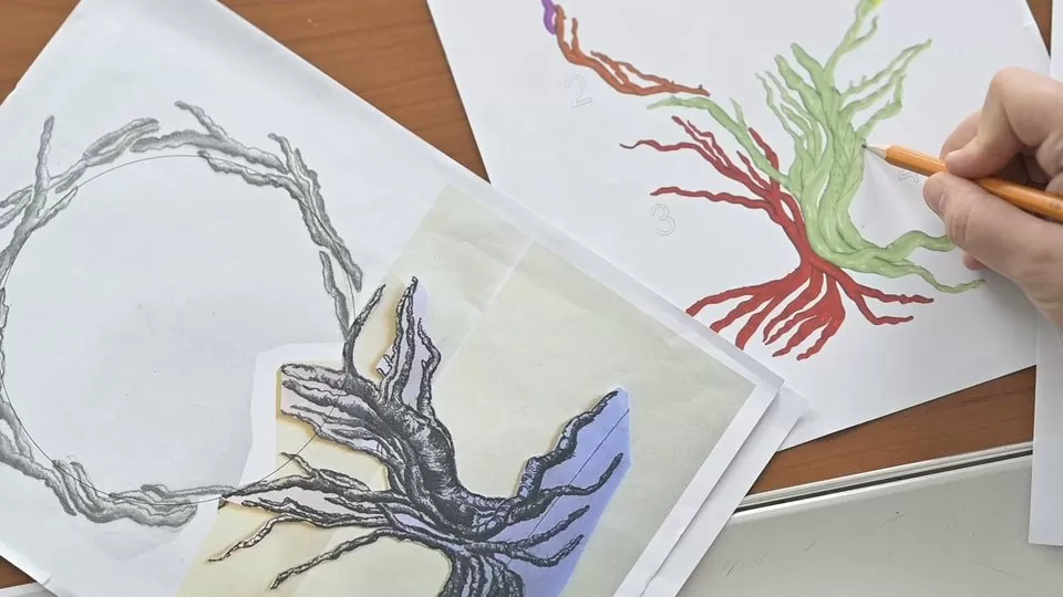 Elizabeth Aro, artista argentina, da molti anni residente in Europa, prima in Spagna e poi in Italia, fa suo un linguaggio che allude da un lato a elementi naturali, come alberi, radici, foglie, e dall’altro a un lavoro paziente e reiterato come quello della tessitura.